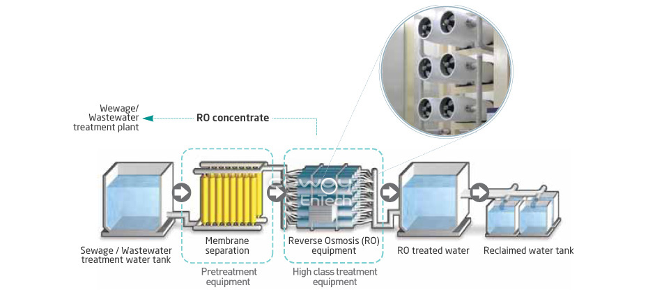 The reuse system is more advanced version of water treatment system where it eliminates wastewater discharge as well as reduces the water usages. You can increase economic value of the water treatment system through reduced water cost while minimizing impact on environment and preventing pollution.