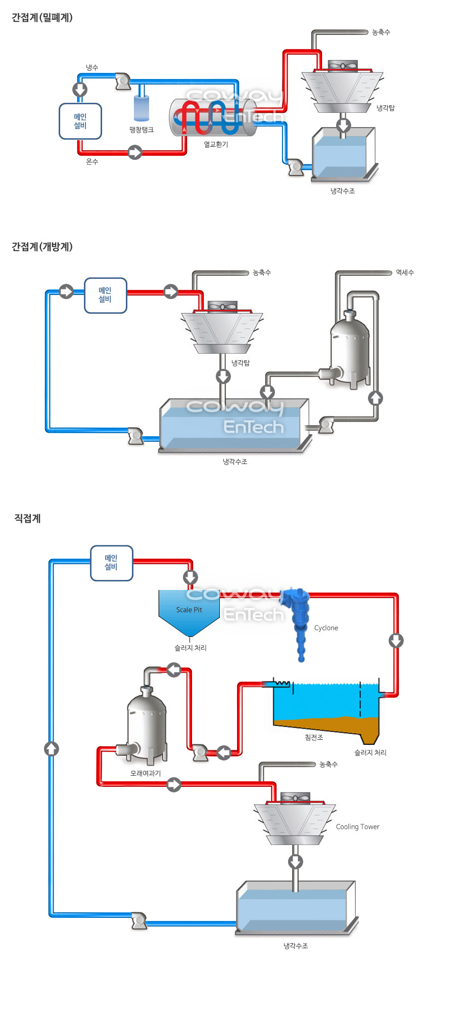 냉각탑 + 열교환기 + 모래여과기 + 농축조