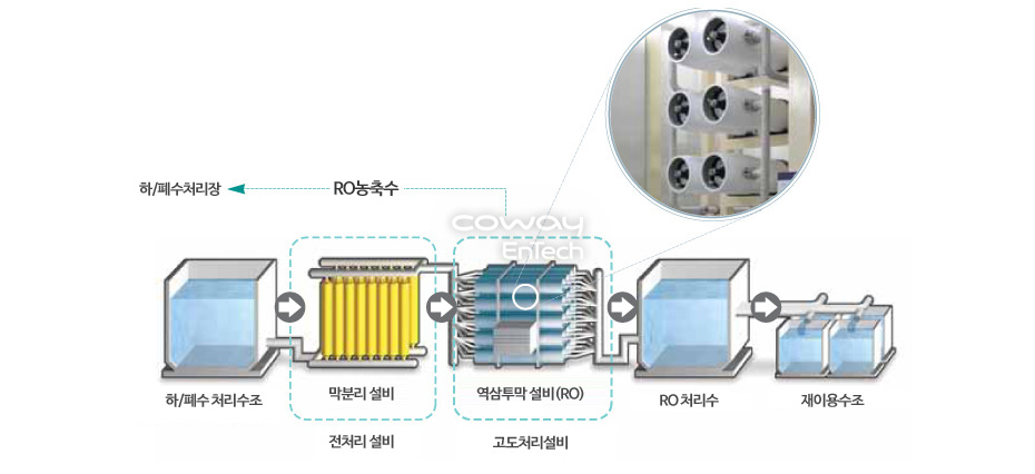 이에 코웨이엔텍은 고객의 재이용 수질기준 요구에 맞추어 최적의 시스템을 구성하여 제공함으로서